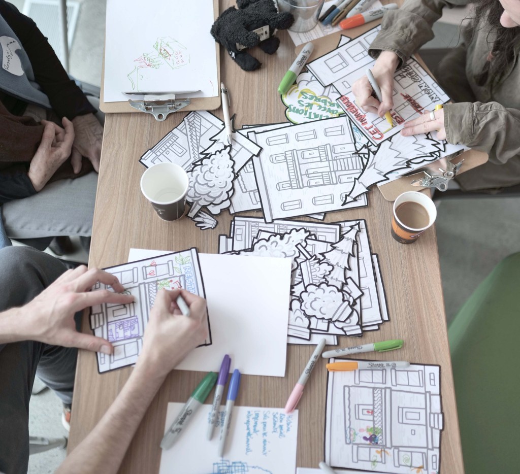 Dans le cadre de l’événement d’urbanisme participatif organisé par la CDC Centre-Sud autour du batiment de Victoria Precision, l’artiste TØ et moi avons conçu une activité de co-création pour imaginer avec les participant⸱e⸱s ce à quoi pourrait ressembler un milieu de vie abordable, social et communautaire dans ce secteur.